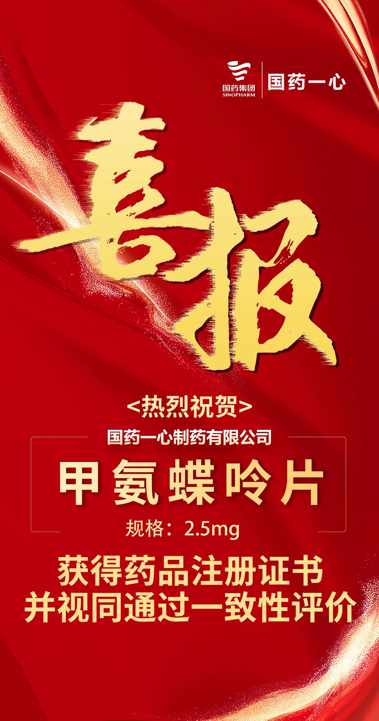 近日,子公司国药一心收到国家药品监督管理局核准签发的《药品注册证书》,甲氨蝶呤片符合药品注册的有关要求,批准注册,发给药品注册证书。