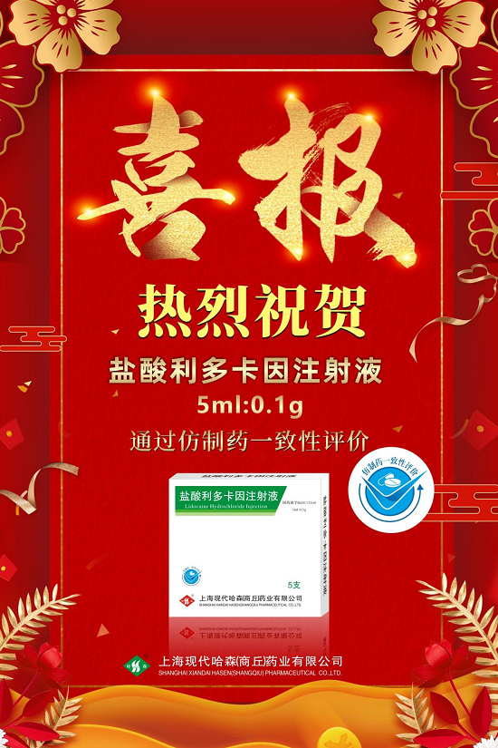 近日,国药哈森收到国家药品监督管理局核准签发的《药品补充申请批准通知书》,批准盐酸利多卡因注射液(5ml:0.1g)通过仿制药质量和疗效一致性评价。